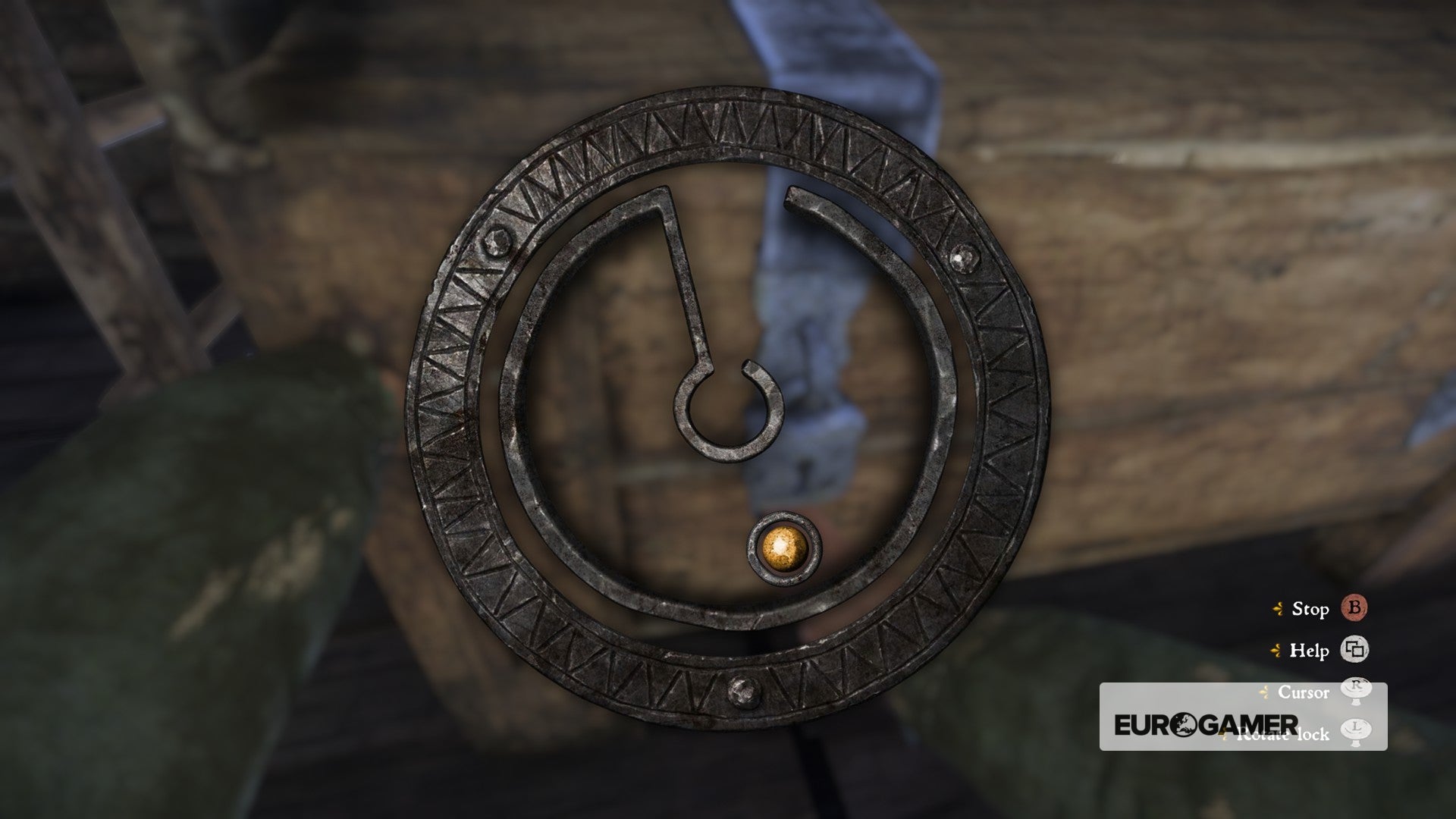 When you've found a lock you want to pick, be it a door or a locked chest, hold down your interact button to get started, and you'll be greeted with this screen: